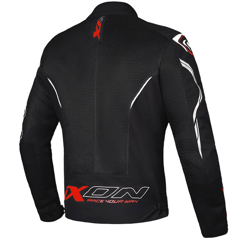 Bunda na moto IXON je vyrobena z stretch ripstop polyesteru a 3D mesh materiálu.