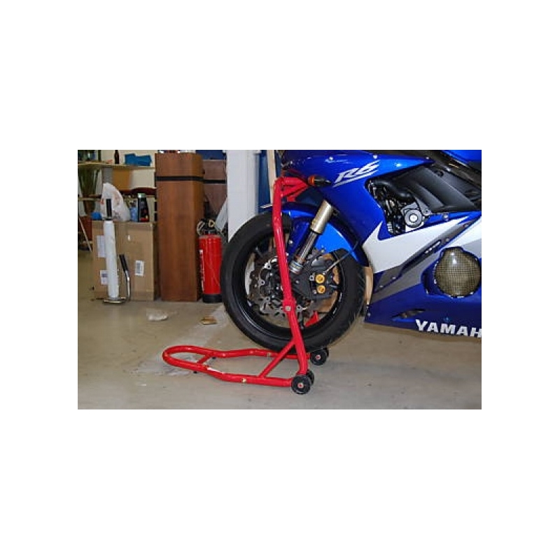 Tento stojan nabízí maximální přístup k přední části motocyklu např. při výměně předního kola či vidlic.