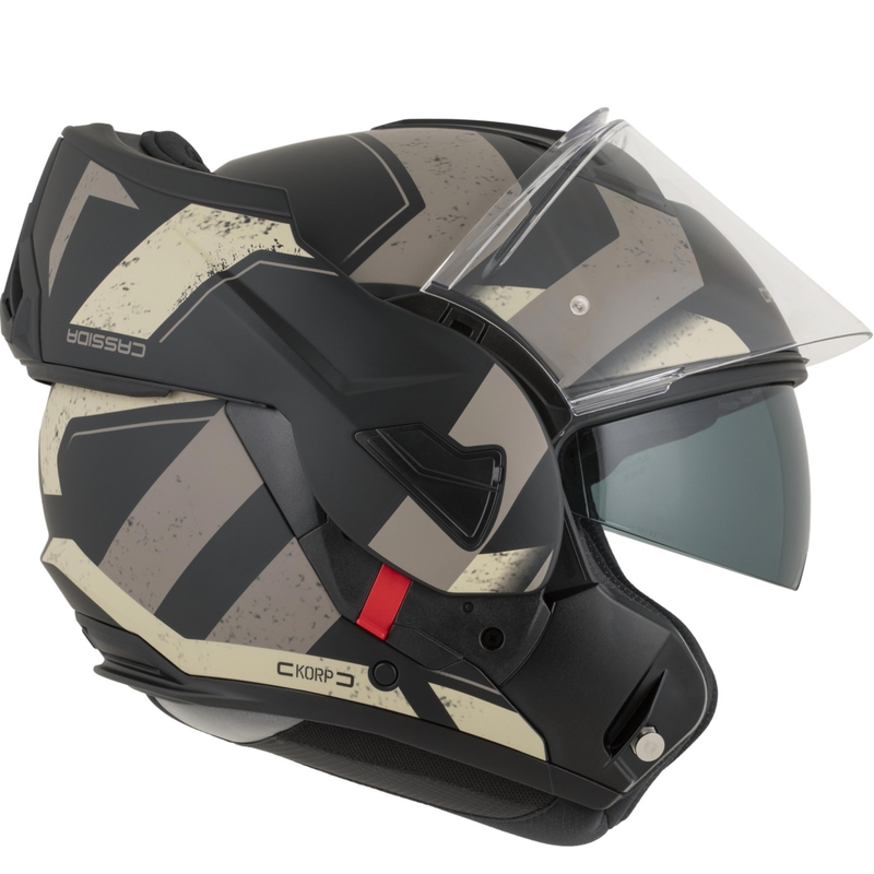 Překlopná helma vyšší střední třídy kombinuje praktickou výklopnou konstrukci s vysokým komfortem a moderní výbavou.