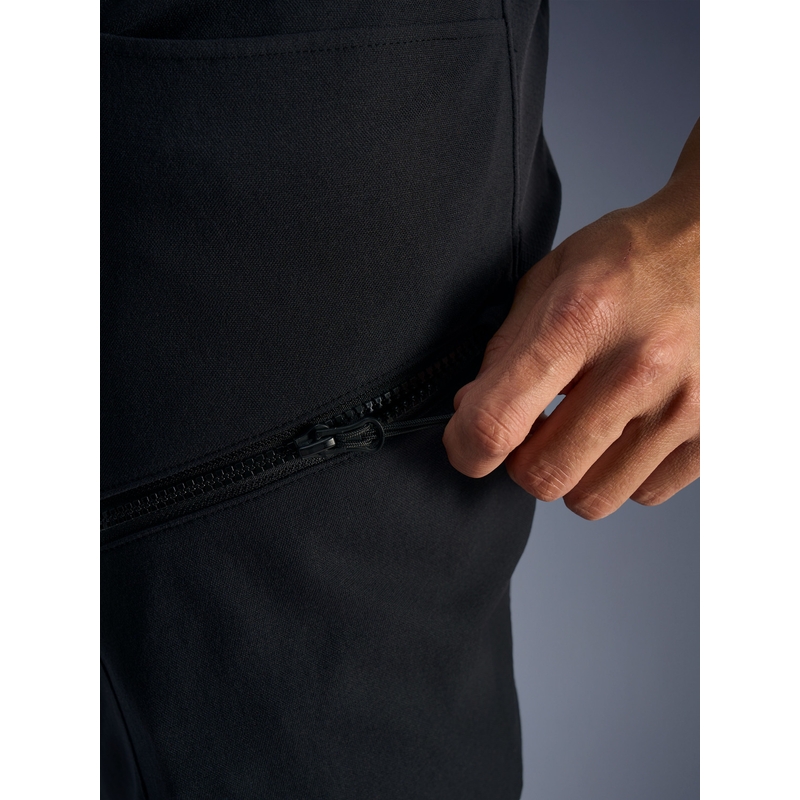 Disponují prostornými kapsami na zip na stehnech.