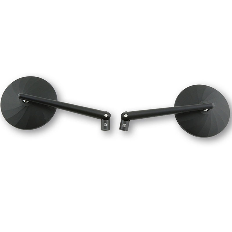 Zrcátka na konce řídítek Highsider mají moderní vzhled s kvalitním konvexním sklem a nastavitelné kloubové spojení pro optimální výhled.